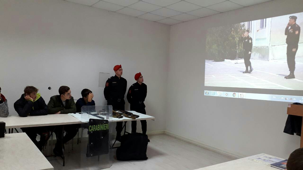 25 Октября 2018 года состоялась встреча учащихся Профессионального училища г.Комрат с представителями Воинской части № 1045. Состоялась интересная беседа, в ходе которой была рассказана история создания Войск Карабинеров и история создания Воинской части, показан видео ролик об учениях в Войсках Карабинеров. Учащиеся интересовались условиями службы по контракту, имели возможность ознакомиться с макетами оружия и примерить обмундирование.